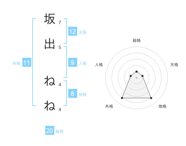 坂出 ねねさんを姓名の画数から五運を鑑定