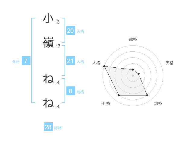 小嶺 ねねさんの天格は20画の1点!