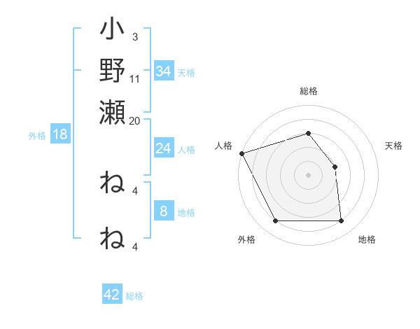小野瀬 ねねさんを姓名の画数から五運を鑑定