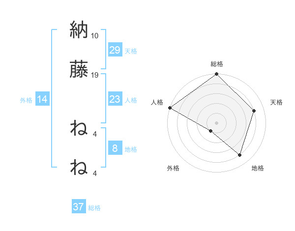 納藤 ねねさんの総格は37画の5点!