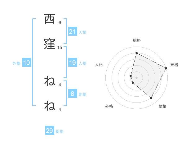 西窪 ねねさんの総格は29画の4点!