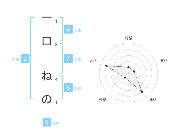 一口 ねのさんの地格は5画の4点!