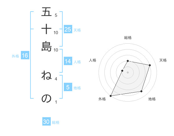 五十島 ねのさんを姓名の画数から五運を鑑定