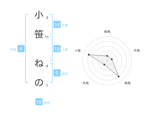 小笹 ねのさんの天格は14画の1点!
