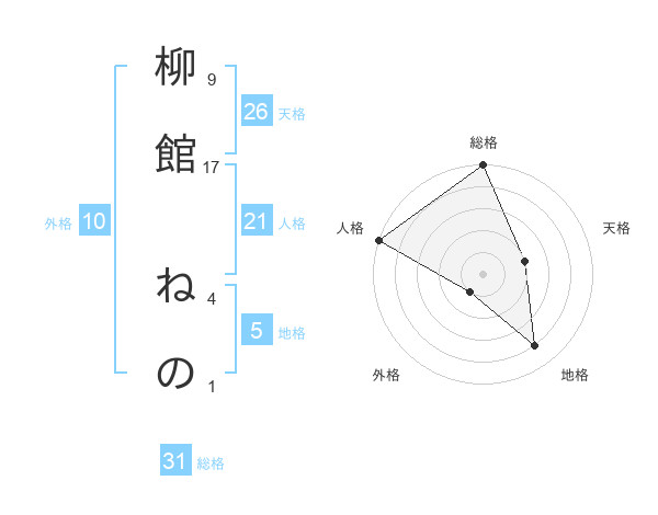 柳館 ねのさんの総格は31画の5点!