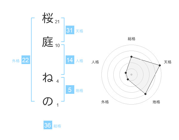 桜庭 ねのさんの地格は5画の4点!