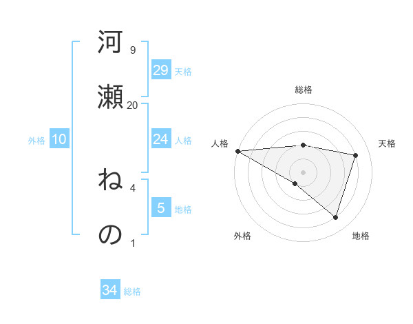 河瀬 ねのさんを姓名の画数から五運を鑑定