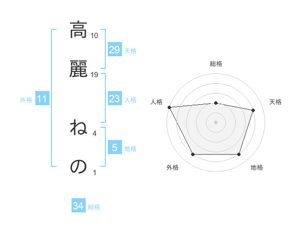 高麗 ねのさんの総格は34画の2点!