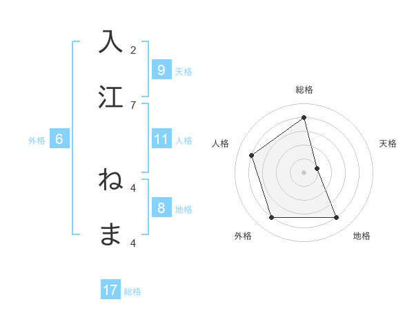 入江 ねまさんの総格は17画の4点!