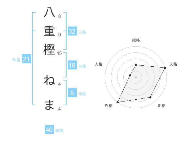 八重樫 ねまさんを姓名の画数から五運を鑑定