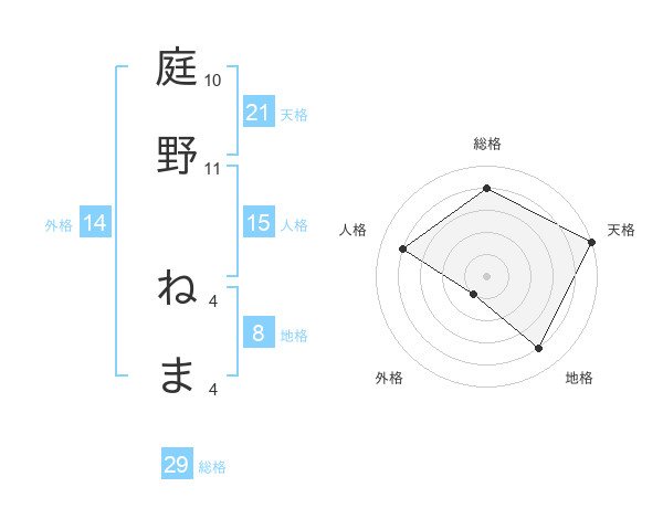 庭野 ねまさんの天格は21画の5点!
