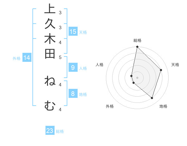 上久木田 ねむさんの総格は23画の5点!