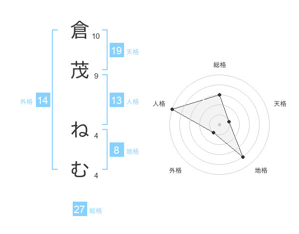 倉茂 ねむさんを姓名の画数から五運を鑑定