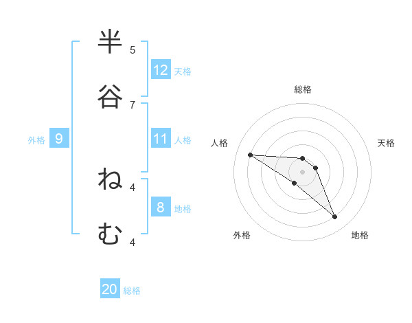 半谷 ねむさんを姓名の画数から五運を鑑定