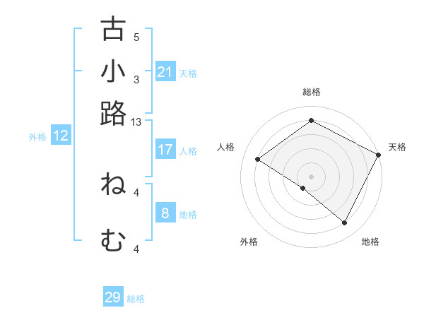 古小路 ねむさんの総格は29画の4点!
