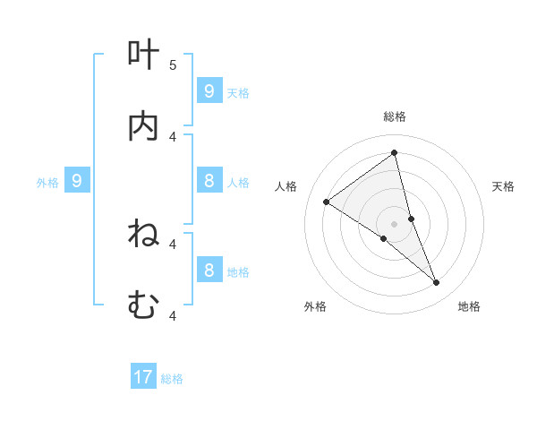 叶内 ねむさんを姓名の画数から五運を鑑定