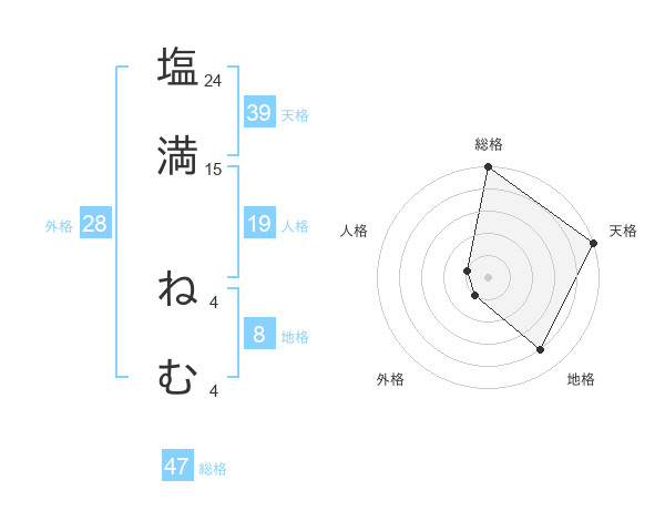 塩満 ねむさんを姓名の画数から五運を鑑定