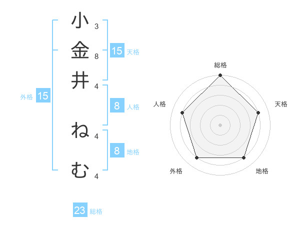 小金井 ねむさんの天格は15画の4点!