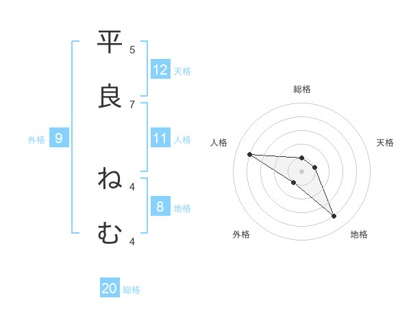 平良 ねむさんの総格は20画の1点!