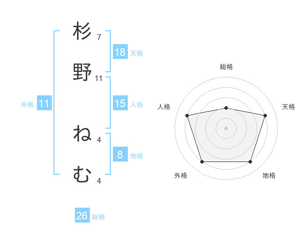 杉野 ねむさんの総格は26画の2点!