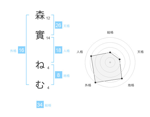 森實 ねむさんの外格は16画の5点!