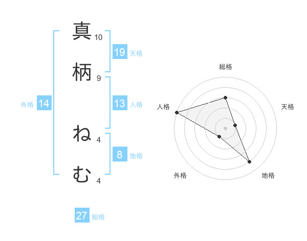 真柄 ねむさんの外格は14画の1点!