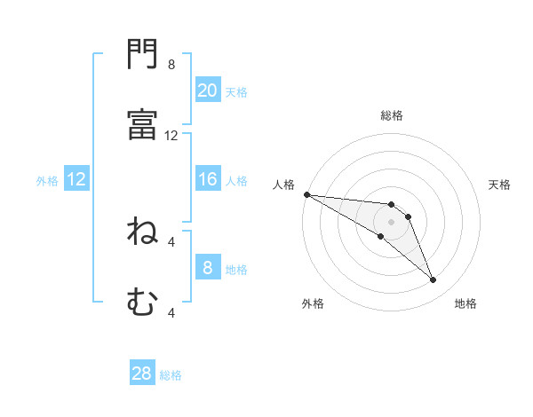 門富 ねむさんの地格は8画の4点!