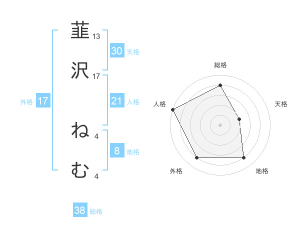 韮沢 ねむさんの外格は17画の4点!