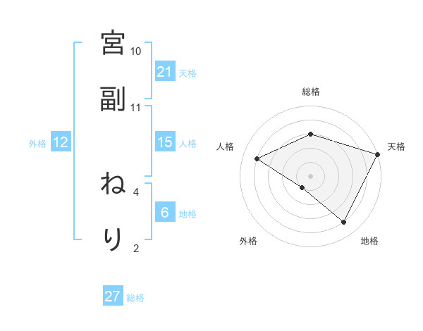 宮副 ねりさんを姓名の画数から五運を鑑定