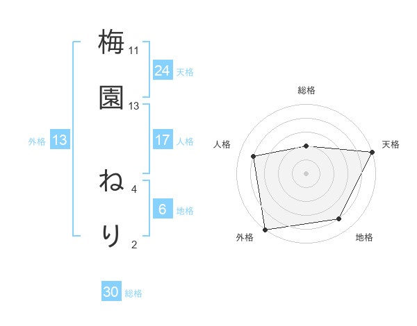 梅園 ねりさんの外格は13画の5点!