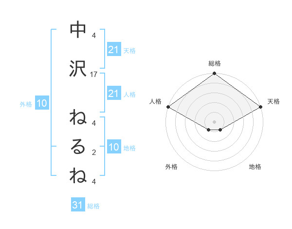 中沢 ねるねさんの天格は21画の5点!