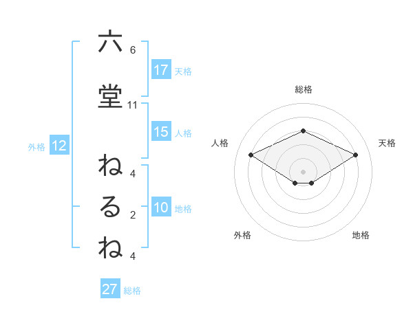 六堂 ねるねさんの天格は17画の4点!