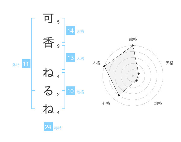 可香 ねるねさんの外格は11画の4点!