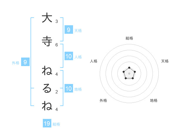 大寺 ねるねさんの地格は10画の1点!