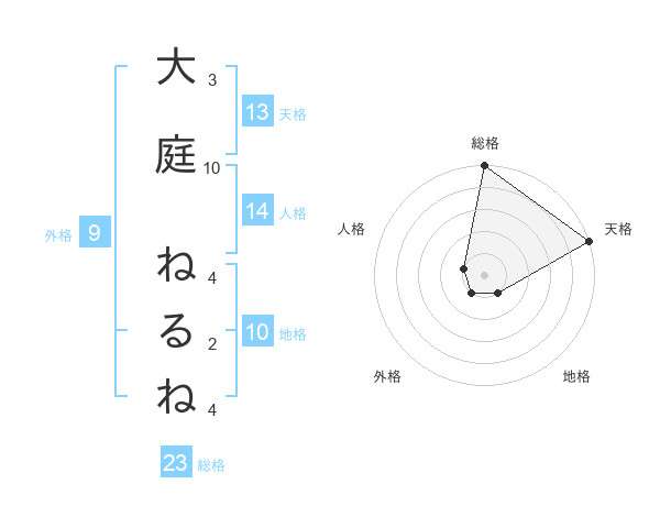 大庭 ねるねさんを姓名の画数から五運を鑑定