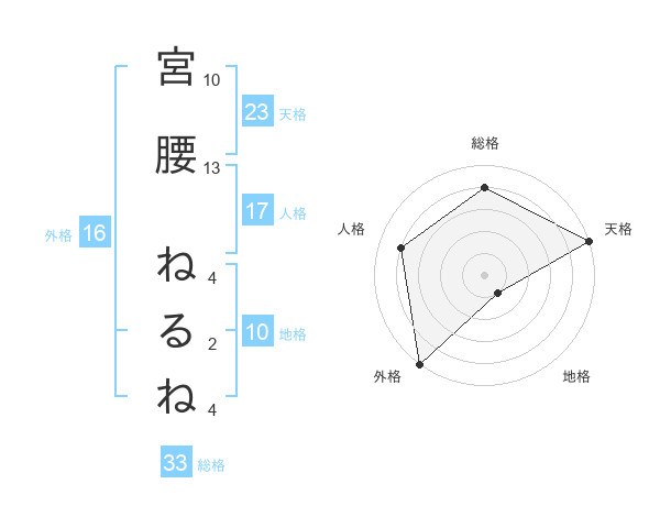 宮腰 ねるねさんを姓名の画数から五運を鑑定