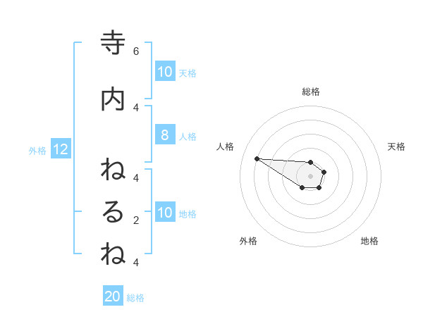 寺内 ねるねさんの地格は10画の1点!