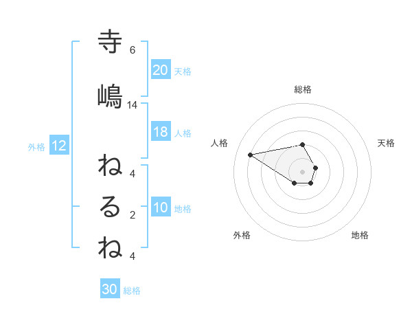 寺嶋 ねるねさんを姓名の画数から五運を鑑定