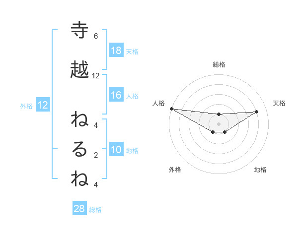 寺越 ねるねさんを姓名の画数から五運を鑑定