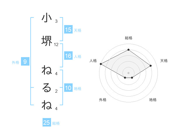 小堺 ねるねさんの総格は25画の4点!