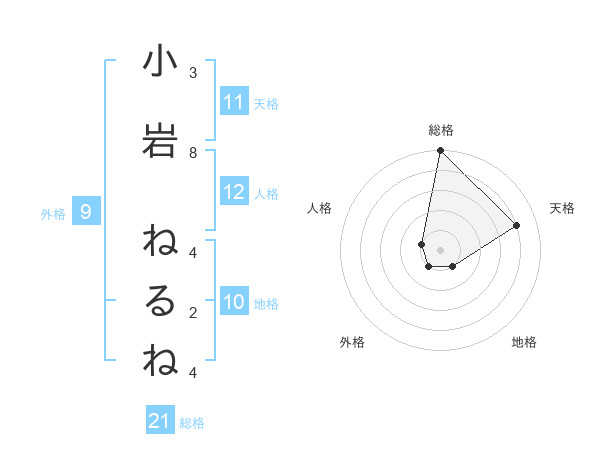 小岩 ねるねさんの総格は21画の5点!
