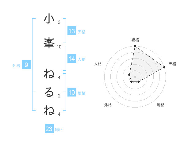 小峯 ねるねさんの天格は13画の5点!