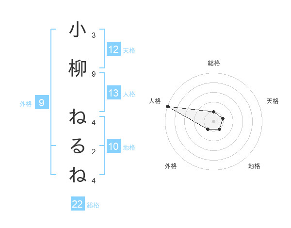 小柳 ねるねさんを姓名の画数から五運を鑑定