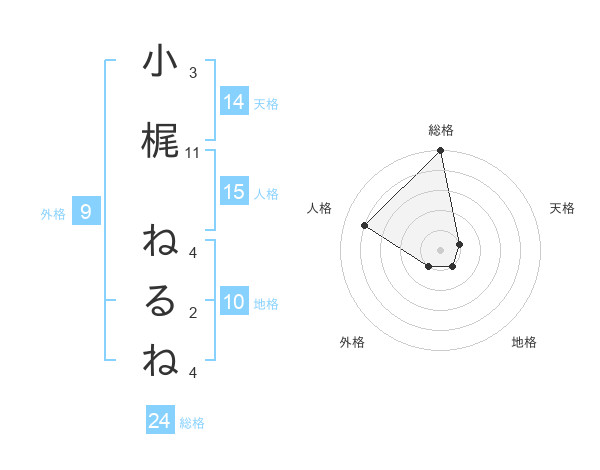小梶 ねるねさんを姓名の画数から五運を鑑定