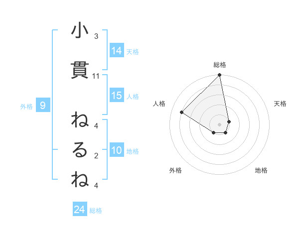 小貫 ねるねさんの総格は24画の5点!