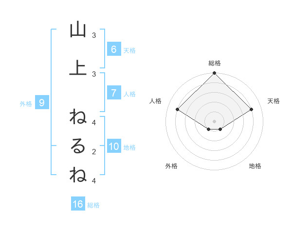 山上 ねるねさんを姓名の画数から五運を鑑定