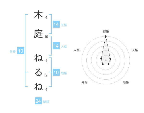 木庭 ねるねさんの総格は24画の5点!