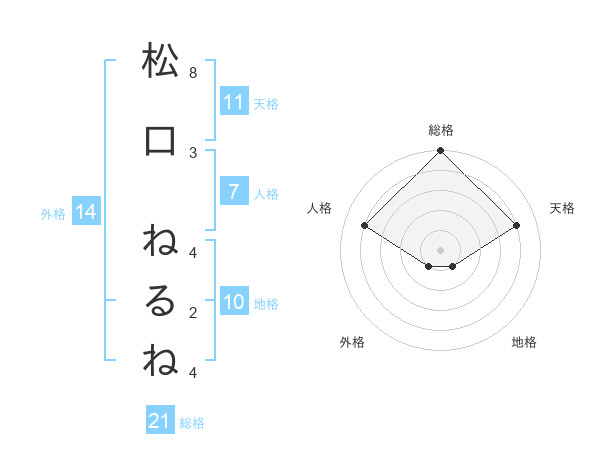 松口 ねるねさんを姓名の画数から五運を鑑定