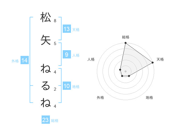 松矢 ねるねさんの総格は23画の5点!