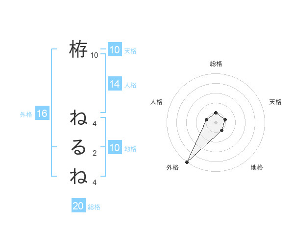 栫 ねるねさんの総格は20画の1点!